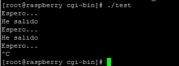 $ gcc -o open_semaphore.cgi open_semaphore.c -lpthreadComprobamos que funciona correctamente. El programa continua ejecutándose a los 10 segundos o al ejecutar el script.